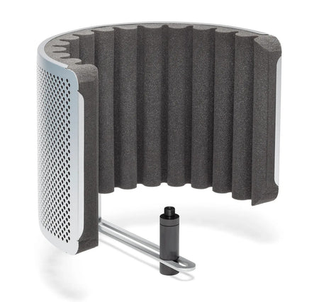 El Samson RC10 Reflection Filter es una pantalla de reflexión acústica que ayuda a controlar las reflexiones tempranas y el ruido ambiente alrededor del micrófono, permitiendo capturas más limpias y focalizadas en salas sin tratamiento. Su estructura de un solo panel combina espuma acústica de densidad estándar en la industria con un armazón de aluminio, logrando un equilibrio entre absorción, rigidez y bajo peso para uso portátil. El conjunto incluye un mecanismo de montaje de acero con rosca estándar y amplios recorridos de ajuste, de modo que puedas posicionar el filtro y el micrófono con precisión en un pie de micro convencional. Con cobertura de 10" (alto) × 14" (ancho) × 9" (fondo), el RC10 es adecuado para voces, locución, podcasts y también para instrumentos acústicos como guitarras, metales o percusión cercana.