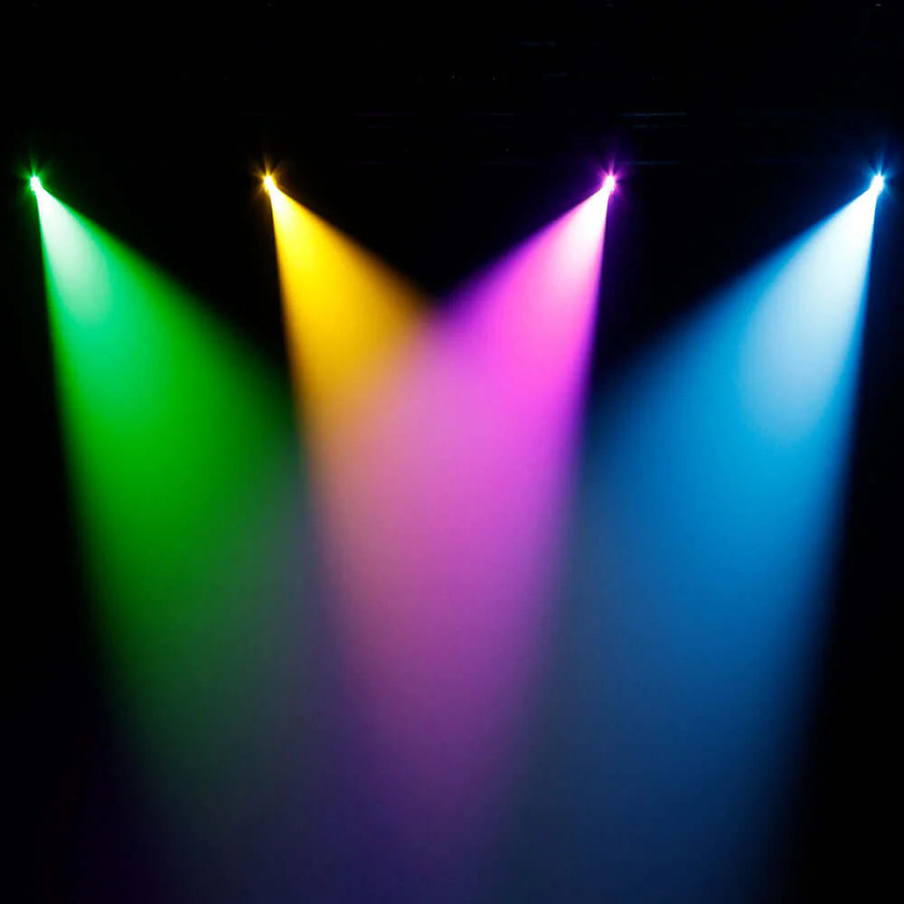 - Teatros y espectáculos que combinan efectos de haz y color.