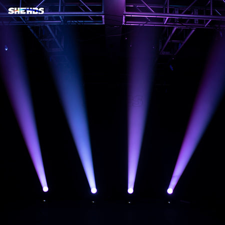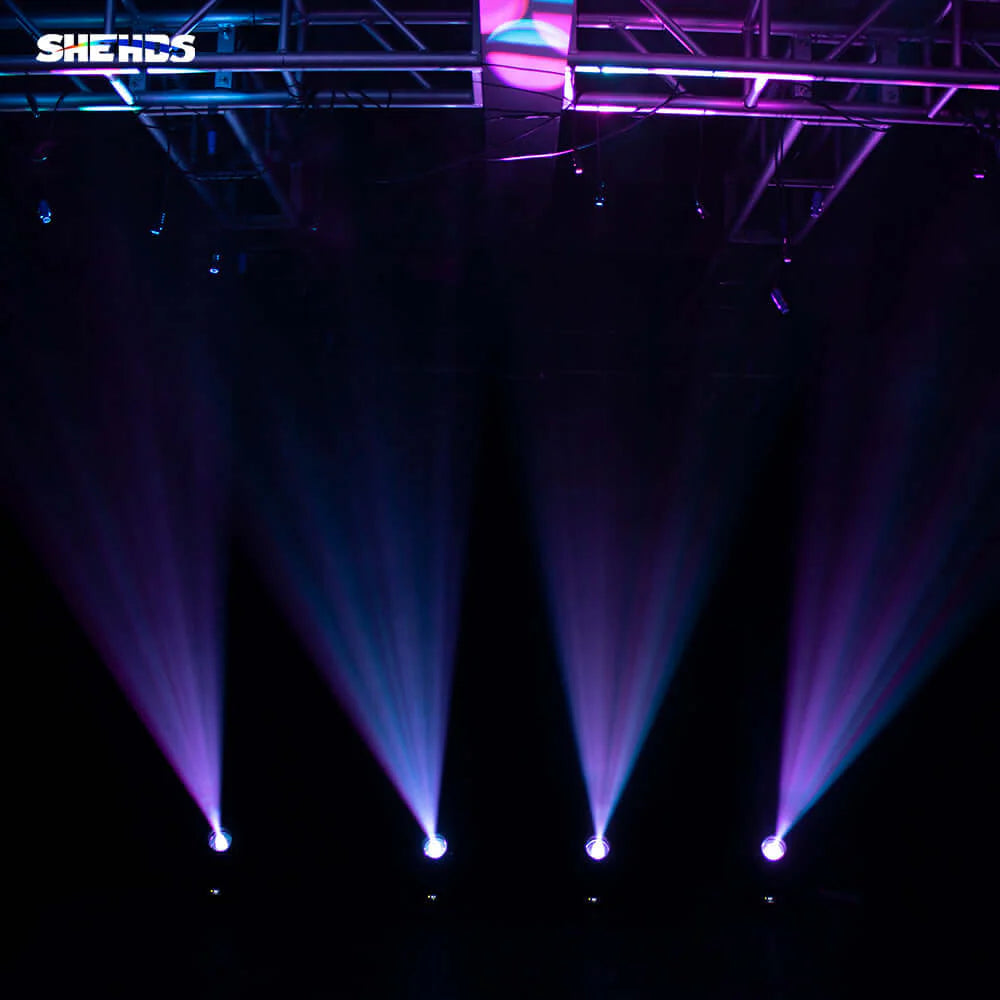 La SHEHDS LED Beam 150W es una luminaria móvil de efecto haz diseñada para profesionales de la iluminación que buscan un punto de luz potente y versátil. Equipada con un LED de alta potencia de 150 W y una lente óptica de gran apertura de 132 mm, ofrece un ángulo de haz ultraestrecho de 2,2 ° que permite definir bordes nítidos y dirigir el foco con máxima precisión. Su doble prisma (8 y 18 facetas) rotativo en ambos sentidos crea desdoblamientos múltiples y efectos dinámicos, mientras que las ruedas de color y gobo integradas (13 colores + blanco y 14 gobos) añaden riqueza cromática y diseños personalizados al escenario.