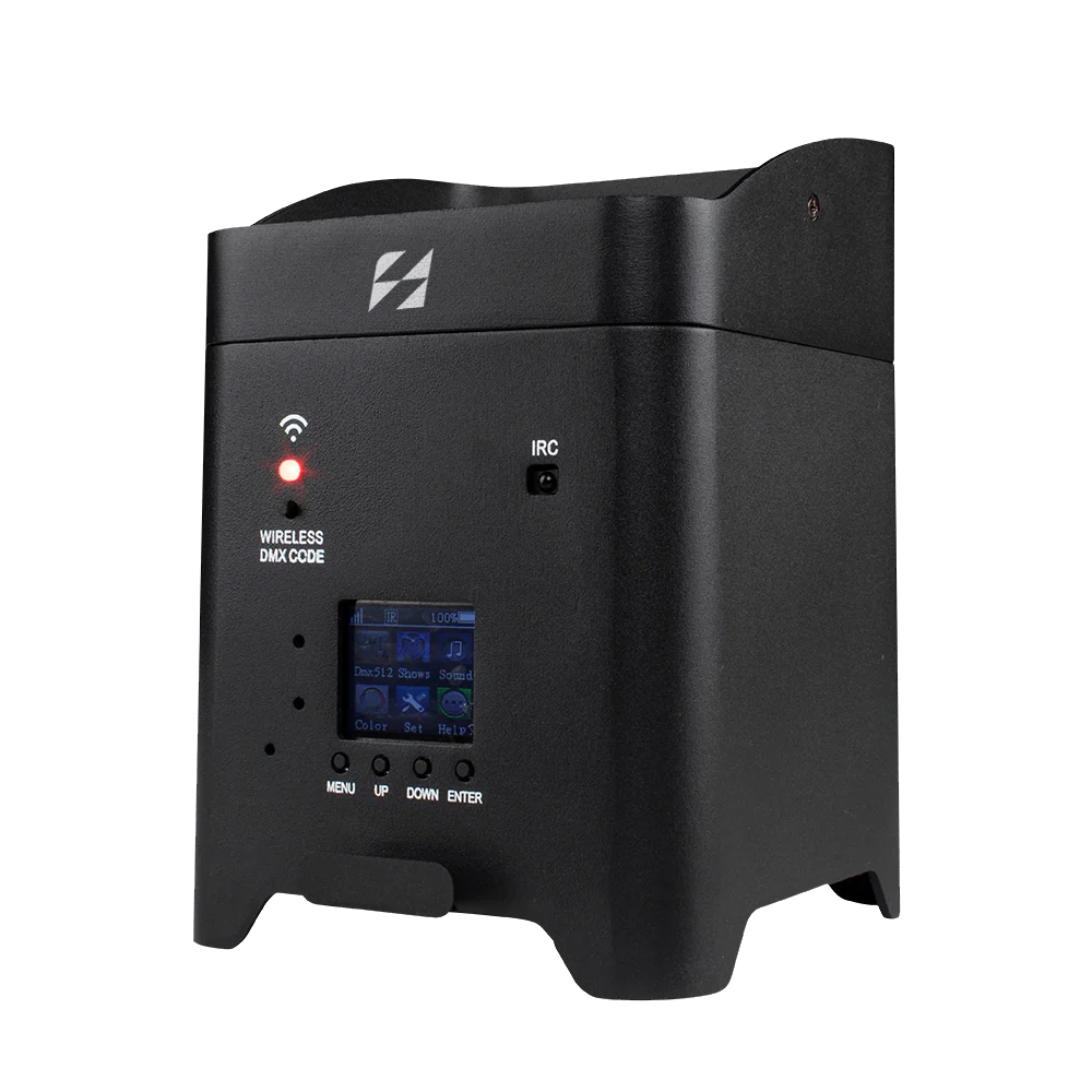 El SHEHDS RCBaP0618F es un foco PAR LED compacto y portátil que funciona con batería integrada de 8 800 mAh, ofreciendo seis potentes LEDs de 18 W en configuración 6 en 1 (RGBAW+UV) para mezclas de color profesionales. Dispone de control inalámbrico vía WiFi (2.4 GHz, alcance 17 m) y mando remoto IR, así como compatibilidad DMX512 y modos maestro-esclavo, automático y activado por sonido. Con un ángulo de haz de 40 °, estroboscopio de hasta 20 Hz y dimmer lineal 0–100 %, garantiza efectos dinámicos sin cables. Su carcasa de aluminio fundido es robusta y ligera, ideal para bares, discotecas, eventos móviles y KTV.