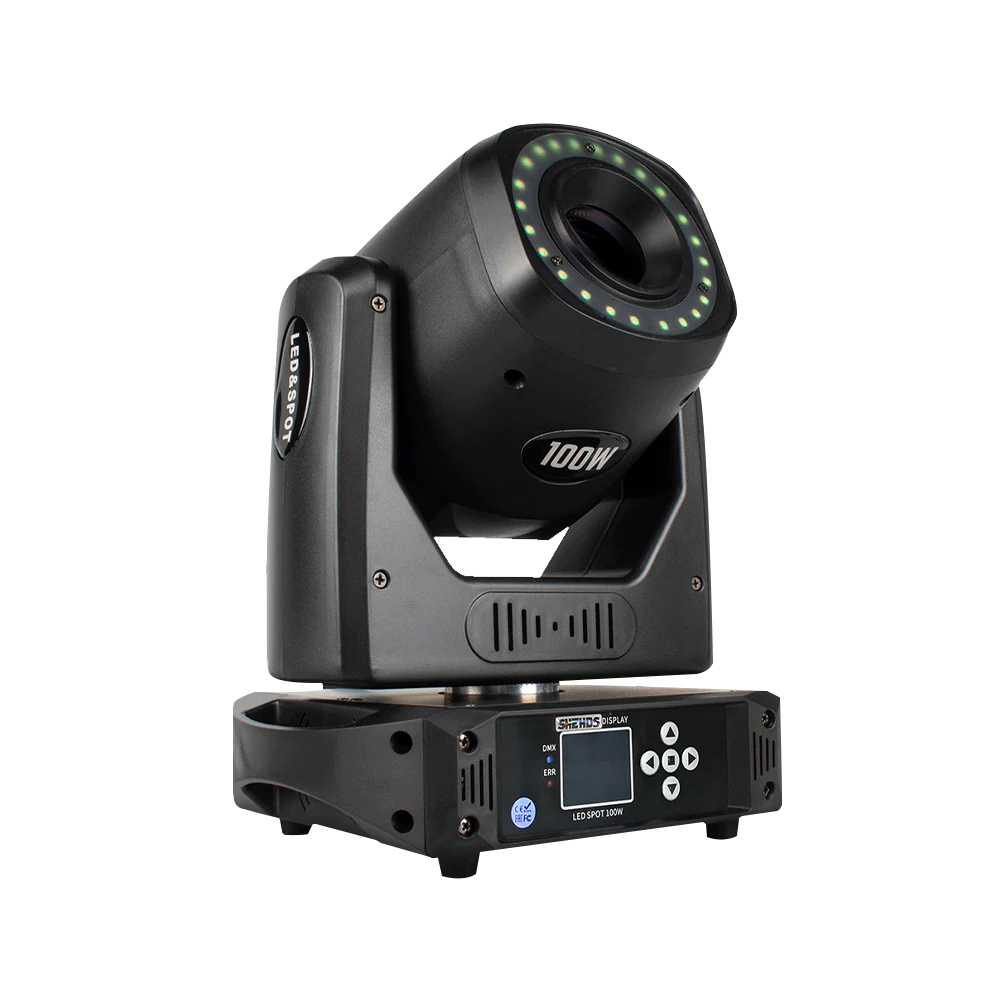 Spot Móvil LED SHEHDS SpCMH100W – 100 W con 6 Prismas, Anillo LED y Pantalla LCD