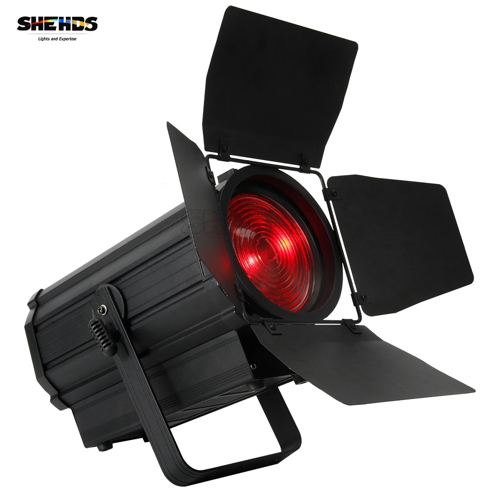 El foco profesional SHEHDS Thea250WRGBW integra un chip LED de alto rendimiento de 250 W con óptica 4IN1 RGBW, ofreciendo una mezcla de colores viva de gran calidad para cualquier ambiente. Gracias a sus barndoors metálicos integrados, permite recortar el haz con precisión y crear bordes definidos en escena.