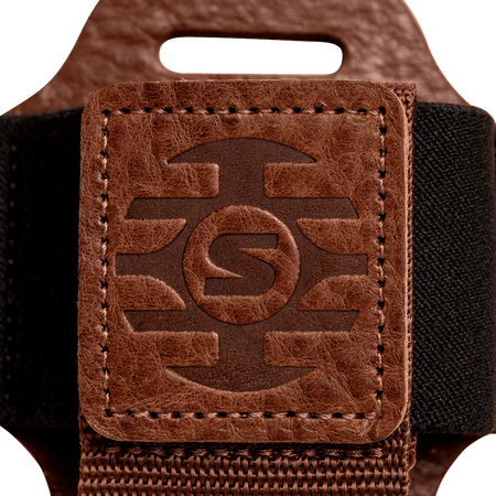 Funda para transmisor de petaca con exterior de cuero genuino y nylon; montaje en correa (máx. 51 mm) o en cinturón (bucle máx. 38 mm) mediante solapa con velcro y ranuras. Dimensiones del producto: 152 × 84 × 38 mm (L × A × H). Peso: 55 g. Color: marrón. Fabricada a mano en Nueva Escocia, Canadá. Modelo: SH-BODYPACK-PBN-L.