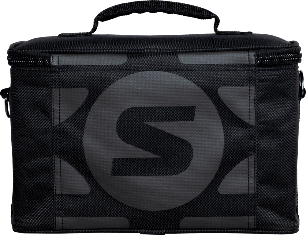 Bolsa acolchada para 4 micrófonos con cable con interior conformado de 4 alojamientos, exterior de nylon 600D, asa acolchada reforzada, correa de hombro ajustable y compartimento exterior para accesorios. Dimensiones exteriores aprox.: 33 × 23 × 15 cm. Peso aprox.: 0,9 kg. Modelo: SH-MICBAG04.