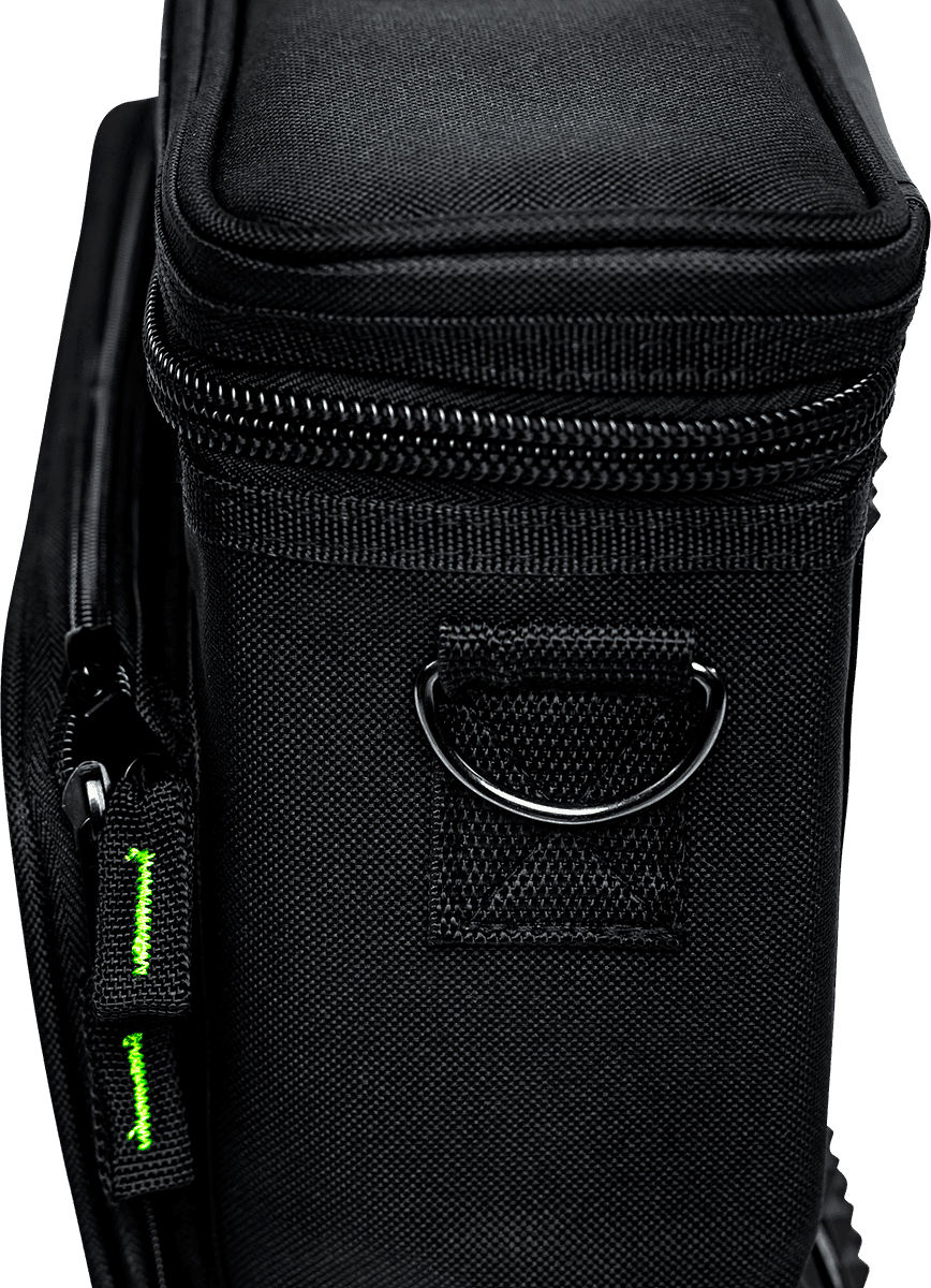 ¿Puedo operar el sistema sin sacarlo? Sí. Los accesos con cremallera delantero y trasero permiten operar el equipo dentro de la bolsa.