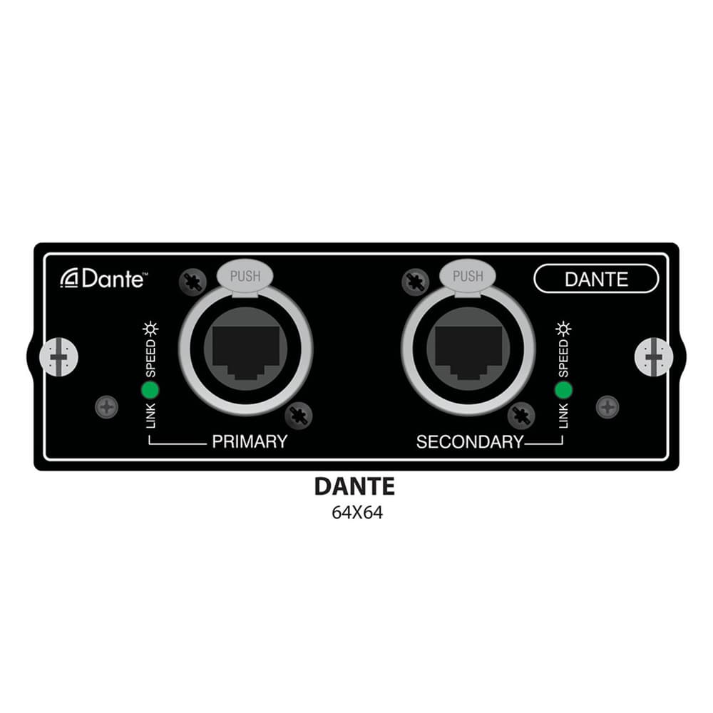 - 64 canales bidireccionales de Dante™ a 48 kHz/24 bits, para mezclar o grabar sin latencia perceptible.