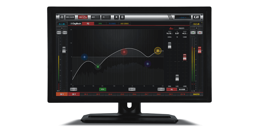 El Soundcraft Ui12 es un mezclador digital compacto que incluye un punto de acceso Wi-Fi integrado y router Ethernet, compatible con iOS, Android, Windows, Mac OS y Linux, permitiendo el control simultáneo de hasta 10 dispositivos (tabletas, smartphones o PCs) sin necesidad de hardware adicional. Integra preamplificadores de micrófono totalmente recallables y controlables de forma remota con alimentación phantom +48 V, junto a procesamiento de señal HARMAN de dbx® AFS2, modelado de amplificador DigiTech® y efectos Lexicon®. Cada canal de entrada ofrece ecualizador paramétrico de 4 bandas, filtro de paso alto, compresor, de-esser y puerta de ruido; mientras que todas las salidas cuentan con EQ gráfico de 31 bandas, puerta, compresor y analizador de frecuencia en tiempo real (RTA). Además, dispone de tres procesadores Lexicon® FX dedicados (Reverb, Delay y Chorus), subgrupos, grupos de mute y “view groups”, y un sistema completo de snapshots y shows con seguridad de canal y protección por contraseña, incluyendo función Sync ID para mantener múltiples ventanas de control sincronizadas.