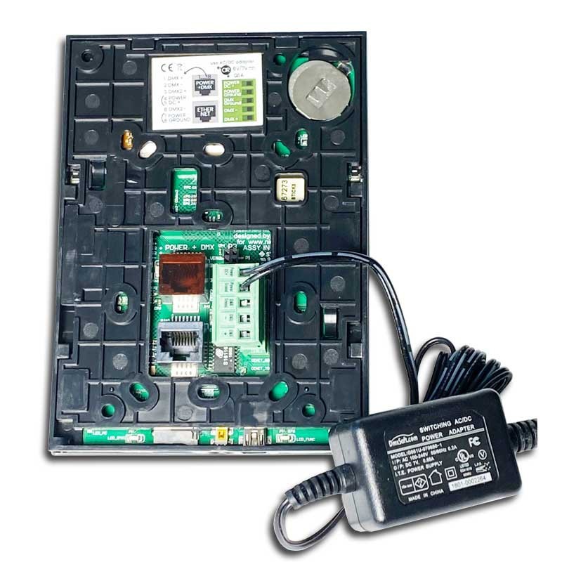 - Panel táctil Stand alone para instalación en pared con 2 universos DMX 1024ch, USB / Ethernet. programable con hasta 500 escenas en 10 zonas diferentes.