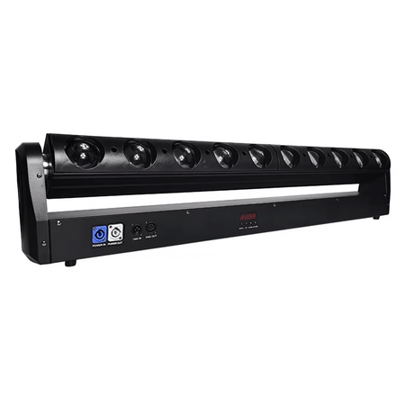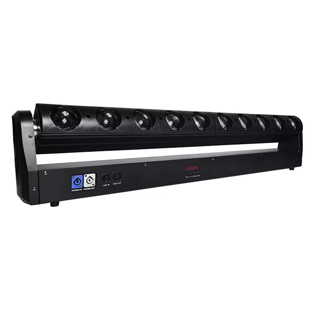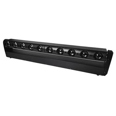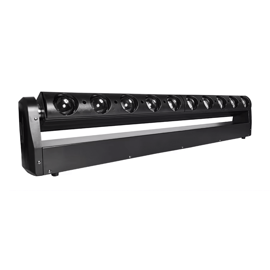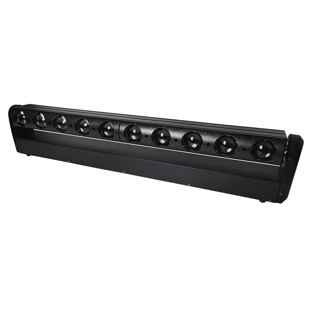 Barra beam móvil de 10×40 W RGBW 4 en 1, 500 W, haz 2°, Y 0–230°, DMX512 (7/13/43 CH), RDM, sonido, auto, master/slave, IP20, 1 100×90×230 mm, 13,6 kg.