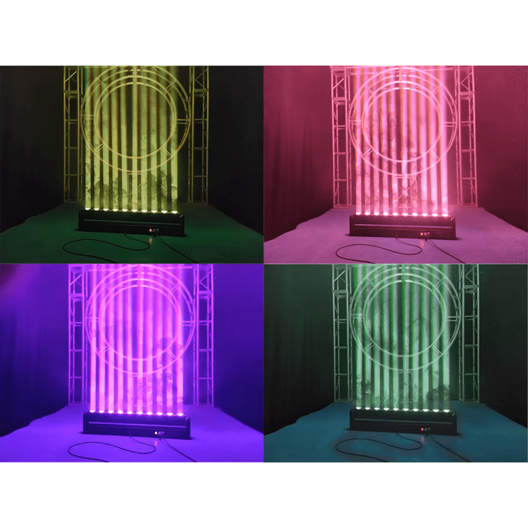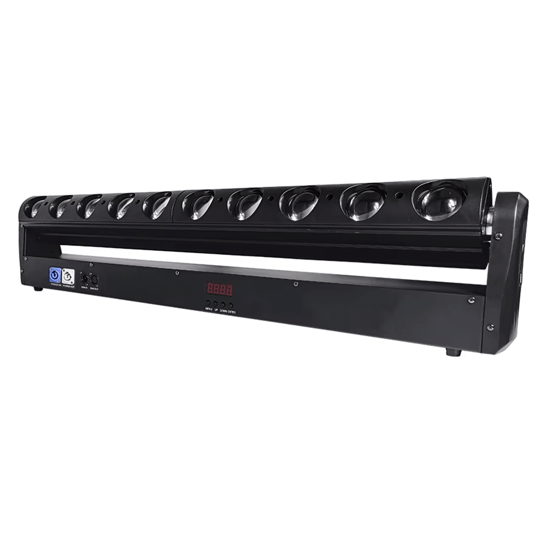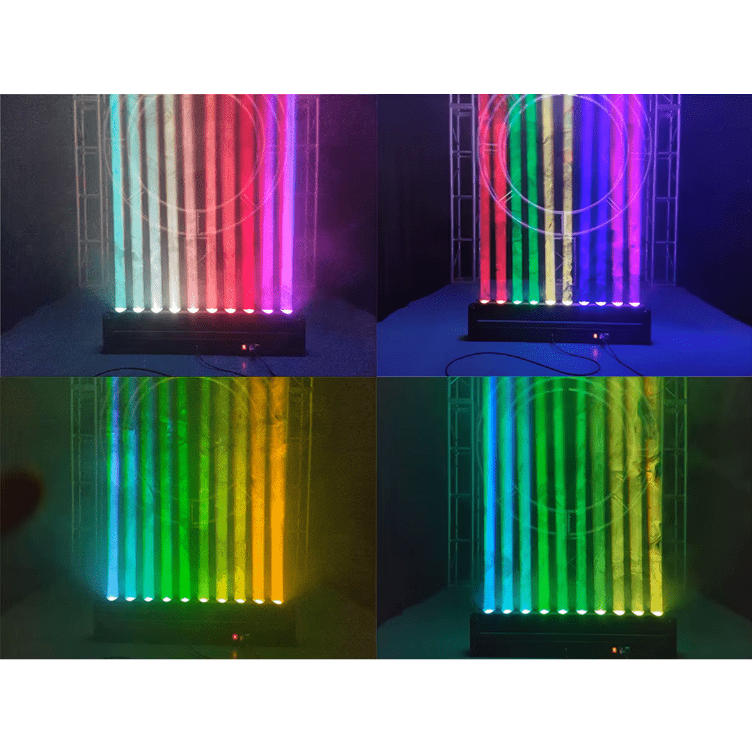 Con control DMX512 (7/13/43 canales), RDM remoto, activación por sonido, modo automático y maestro/esclavo, esta barra ofrece versatilidad profesional para programar secuencias complejas o dejarla en funcionamiento autónomo. El movimiento del eje Y abarca 0–230°, permitiendo barridos amplios sin puntos muertos, y las opciones de canalización facilitan la personalización de efectos y macros desde cualquier consola estándar.