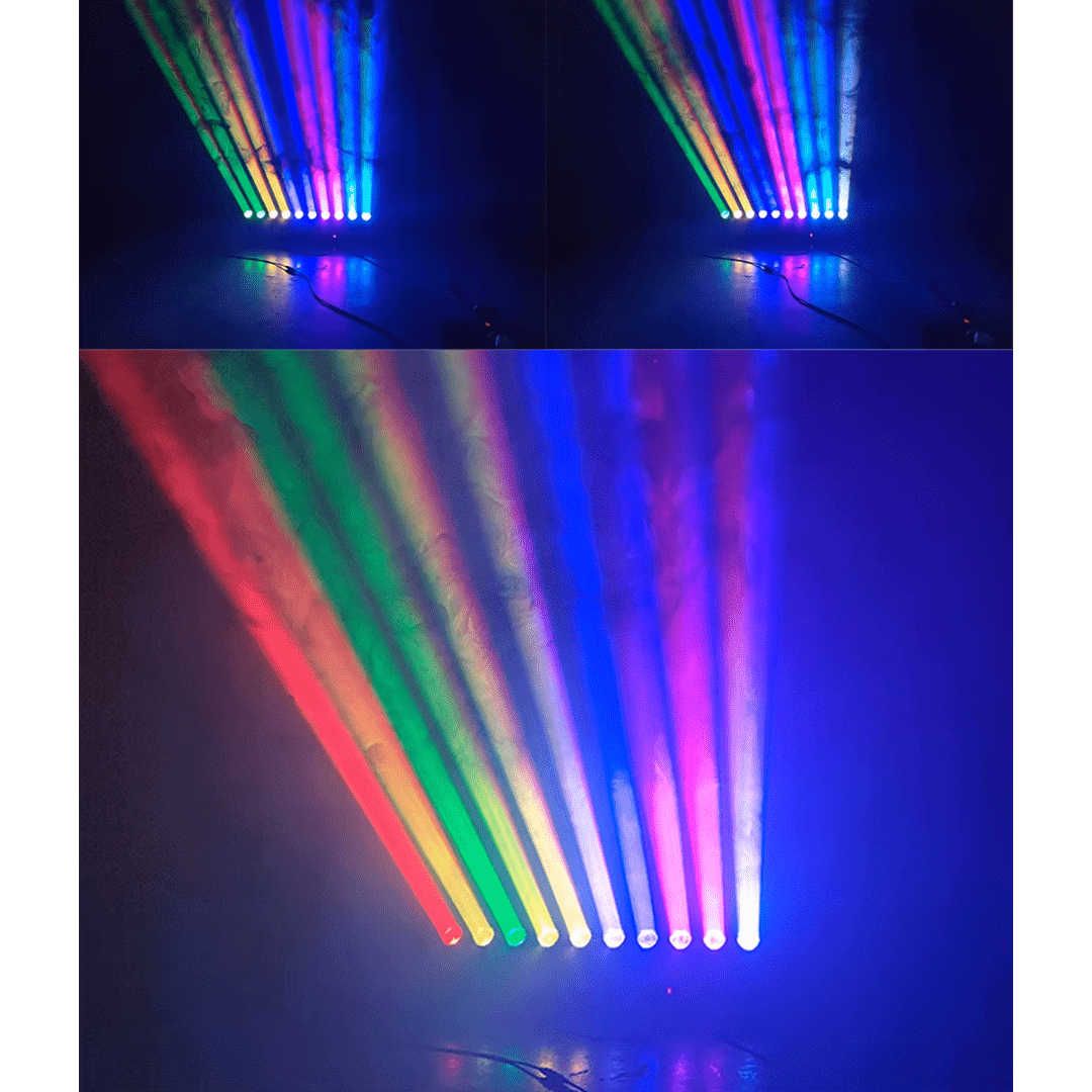 Ideal para iluminar pasarelas en desfiles, crear filas de haces en discotecas, ambientar escenarios de conciertos y ofrecer efectos de rayo en bodas y eventos corporativos.
