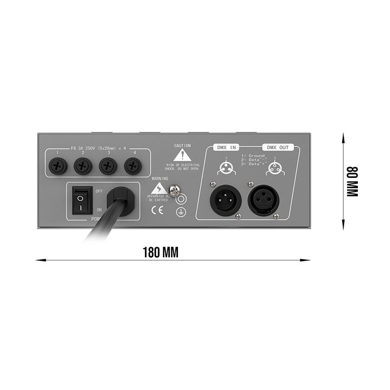 - Salida DMX: 1 XLR hembra de 3 Pin