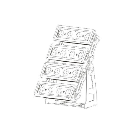Soporte vertical modelo TR-S1W12 de la serie Wally. Diseñado para la instalación de cuatro proyectores modelo Wally 12 IP65. Apto para montaje en suelo, pared o techo. Permite la movilidad de los equipos para un enfoque ajustable.