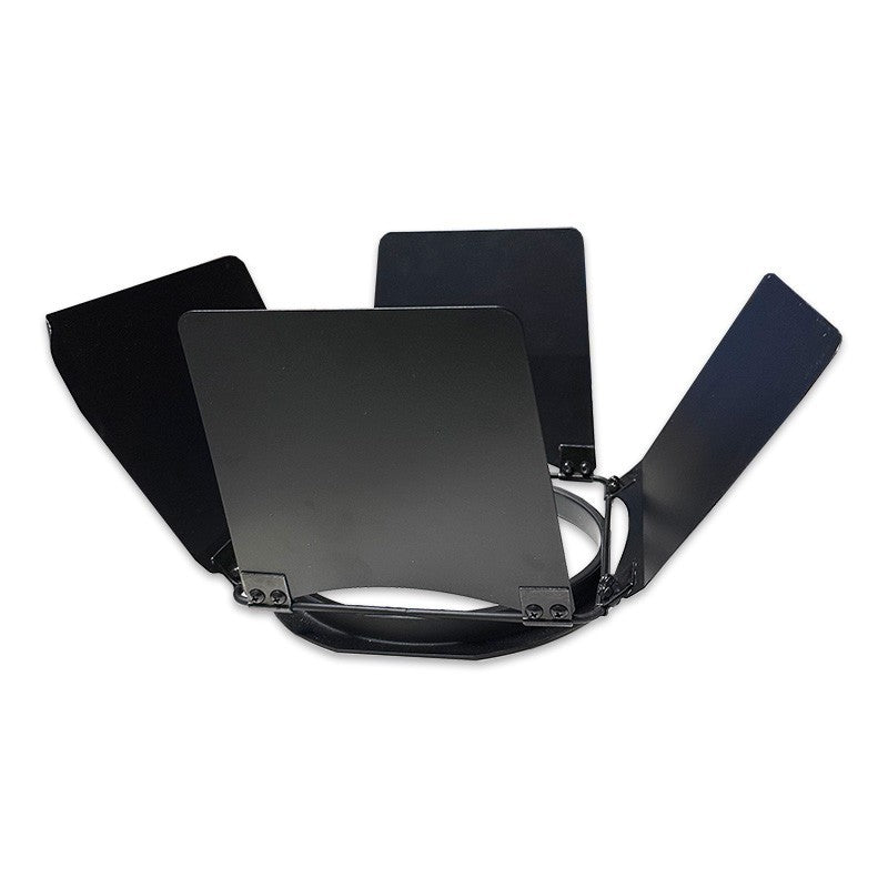 - Diseño de 4 Palas Ajustables: Cada una de las cuatro palas se puede ajustar de forma independiente, ofreciendo una flexibilidad total para crear haces de luz con bordes definidos, rectángulos, cuadrados o cualquier forma necesaria para la puesta en escena.