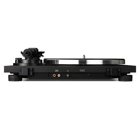 De serie monta una cápsula Ortofon OM10 (MM, elíptica), lista para disfrutar desde el primer momento. Gracias a la conexión de portacápsulas GM/SME, podrás actualizar o intercambiar cápsulas con rapidez. En el panel posterior, el TURN 2 ofrece salidas RCA chapadas en oro y borne de tierra independientes con cables desmontables para minimizar interferencias y facilitar futuras mejoras. Su chasis slim-line de MDF reduce resonancias y aporta un diseño elegante disponible en varios acabados, incluido este negro mate.