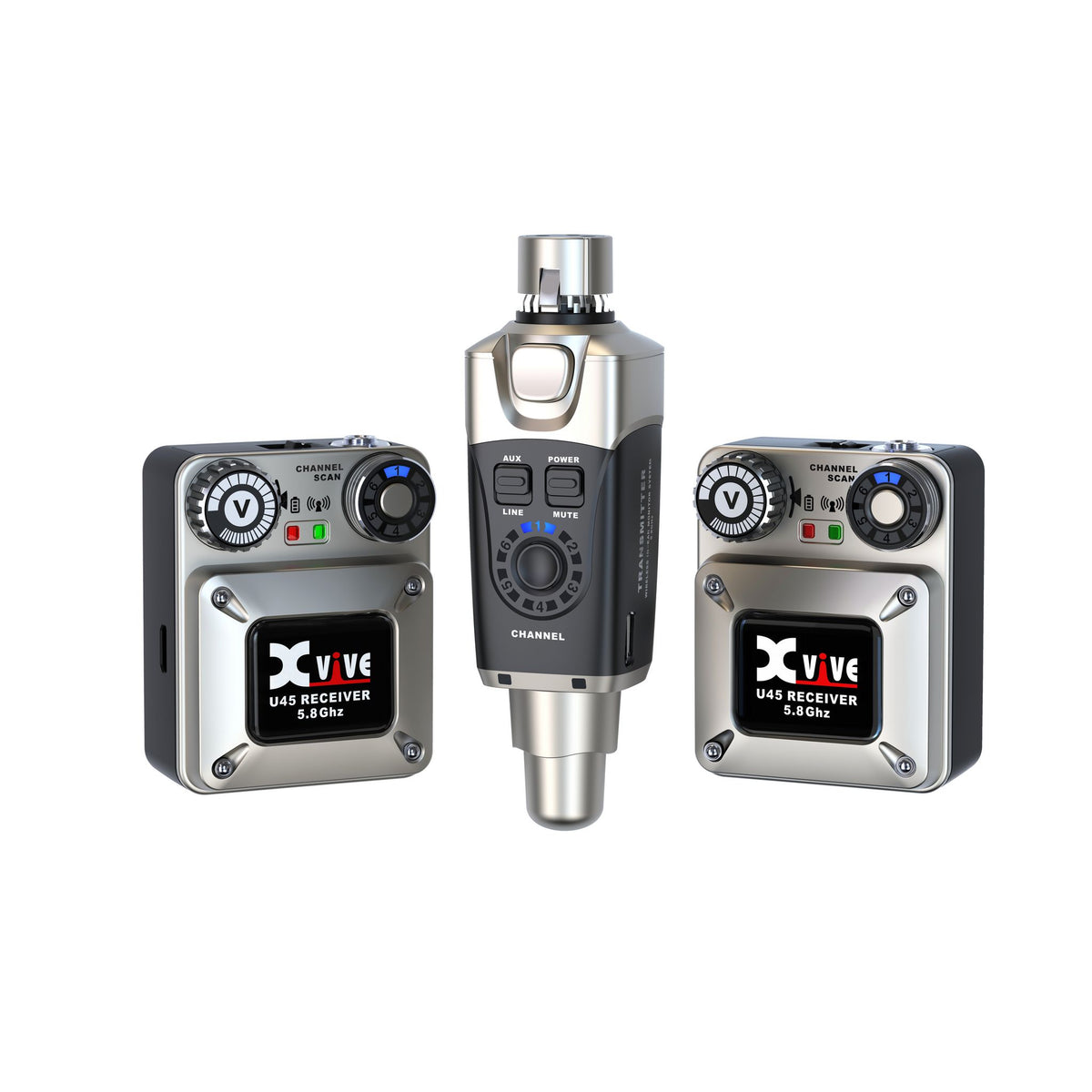El kit XVIVE U45R2 incluye un transmisor U45T y dos receptores U45R que operan en la banda libre de 5,8 GHz con tecnología True Diversity, garantizando una señal estable y sin interferencias hasta 30 m de alcance en línea de vista. Su conversión A/D de alta resolución (24 bit/48 kHz) y respuesta de frecuencia completa de 20 Hz a 20 kHz ofrecen audio nítido y detallado. Con una latencia inferior a 5 ms, rango dinámico de 110 dB y relación señal/ruido de 110 dB, el U45R2 es ideal para monitorización personal profesional en directo, estudio y streaming. Tanto el emisor como los receptores son recargables (aprox. 5 h de autonomía) y están alojados en carcasas de ABS ligeras, con conmutador Aux/Line y salida estéreo de 3,5 mm para conectar auriculares o IEMs.