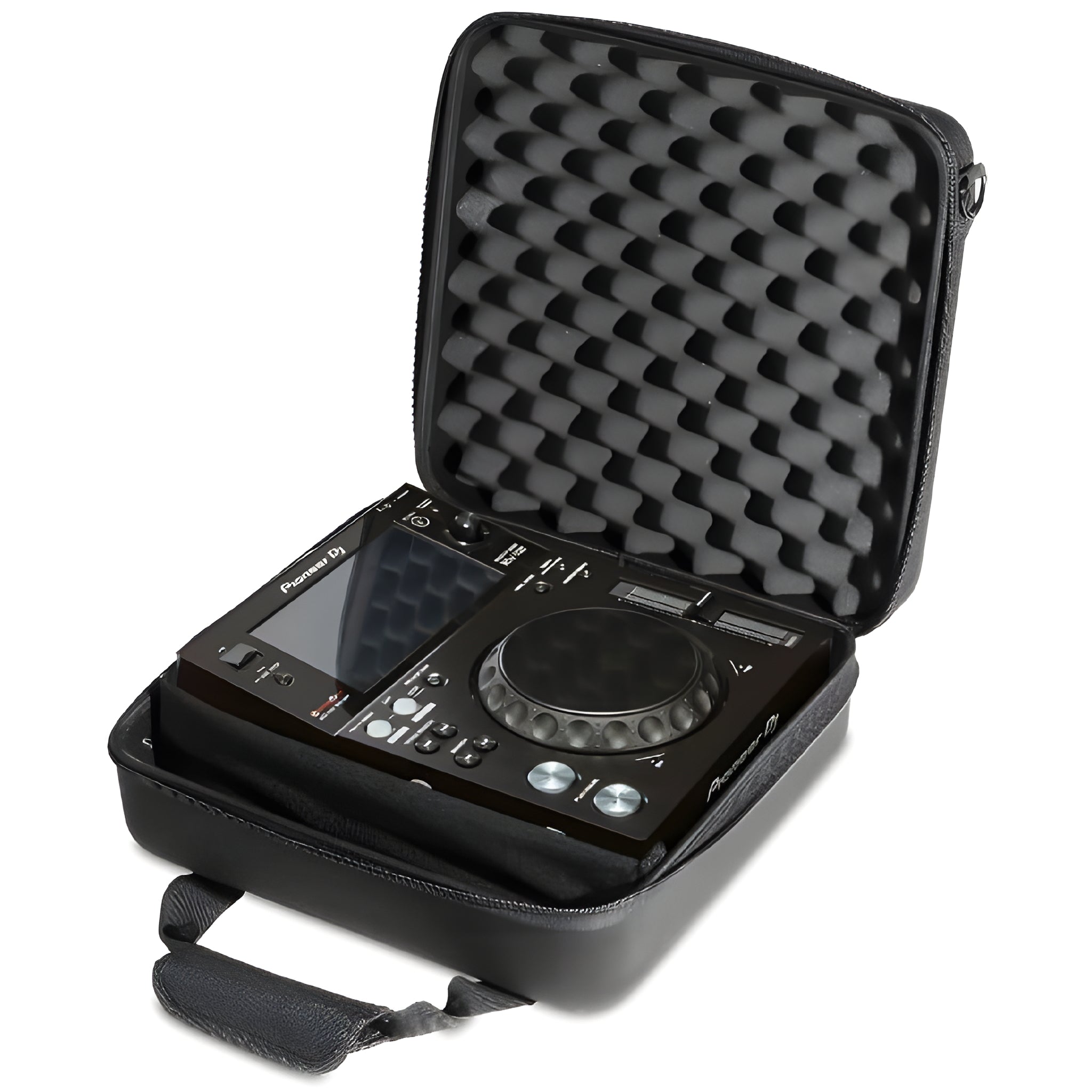 Hardcase para Pioneer XDJ-700 / Numark PT01 Scratch (U8446BL): cuerpo en EVA Durashock moldeada con exterior de nylon laminado repelente al agua; interior de vellón con espuma tipo “caja de huevos”; divisor interno extraíble; tiradores Easy-Grip; asa y correa de hombro; color negro; dimensiones exteriores 33 × 32 × 14 cm; dimensiones interiores 32 × 31,5 × 13 cm; peso 1,72 kg.