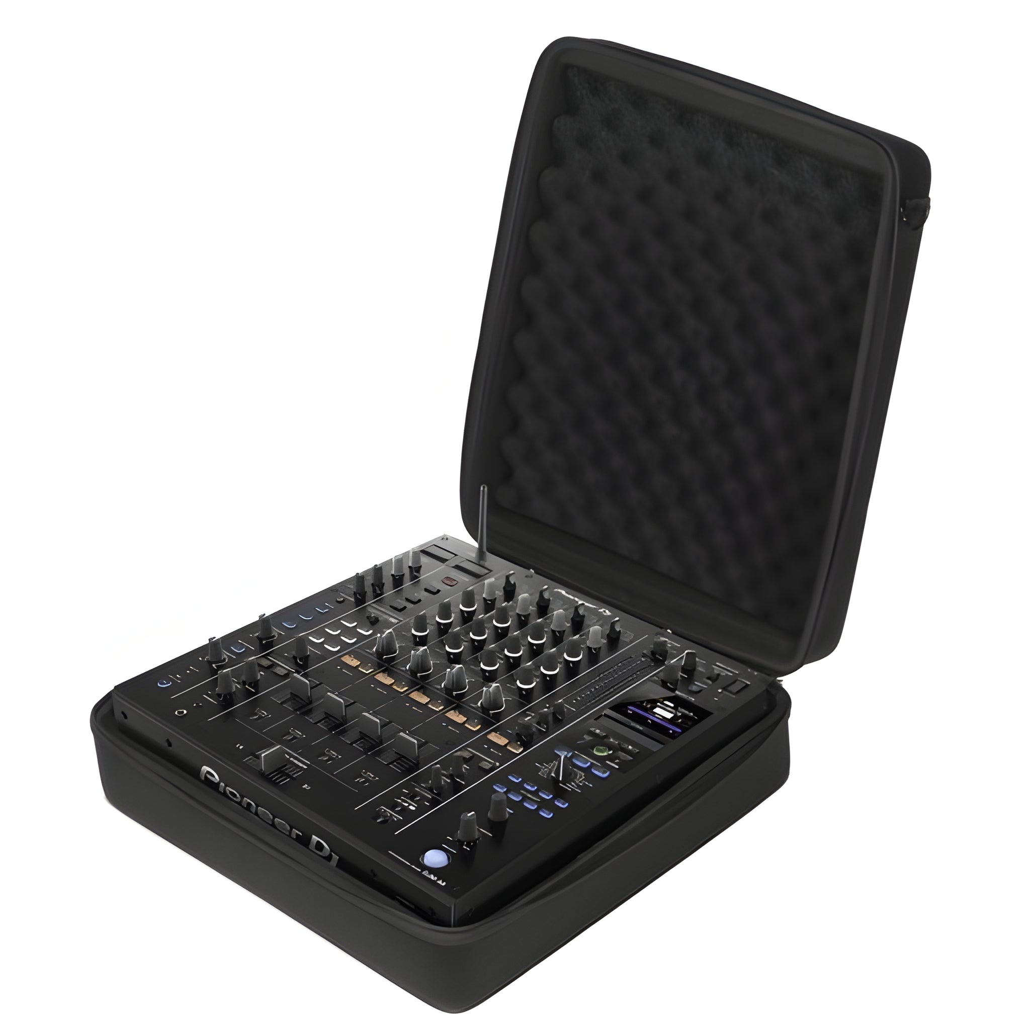 Funda rígida para mezclador, marca UDG, modelo U8495BL (Creator Pioneer DJM-A9 Hardcase, color negro); cuerpo en EVA Durashock moldeada 5 mm; exterior poliéster 600D laminado, tejido repelente al agua; interior de felpa negra con espuma superior tipo “egg-crate”; cierres de cremallera con tiradores de fácil agarre; asa de transporte y correa de hombro; dimensiones internas 41,2 × 13,0 × 46,3 cm; dimensiones externas 45,2 × 14,0 × 48,3 cm; peso aprox. 1,54 kg; compatibilidad: Pioneer DJM-A9.