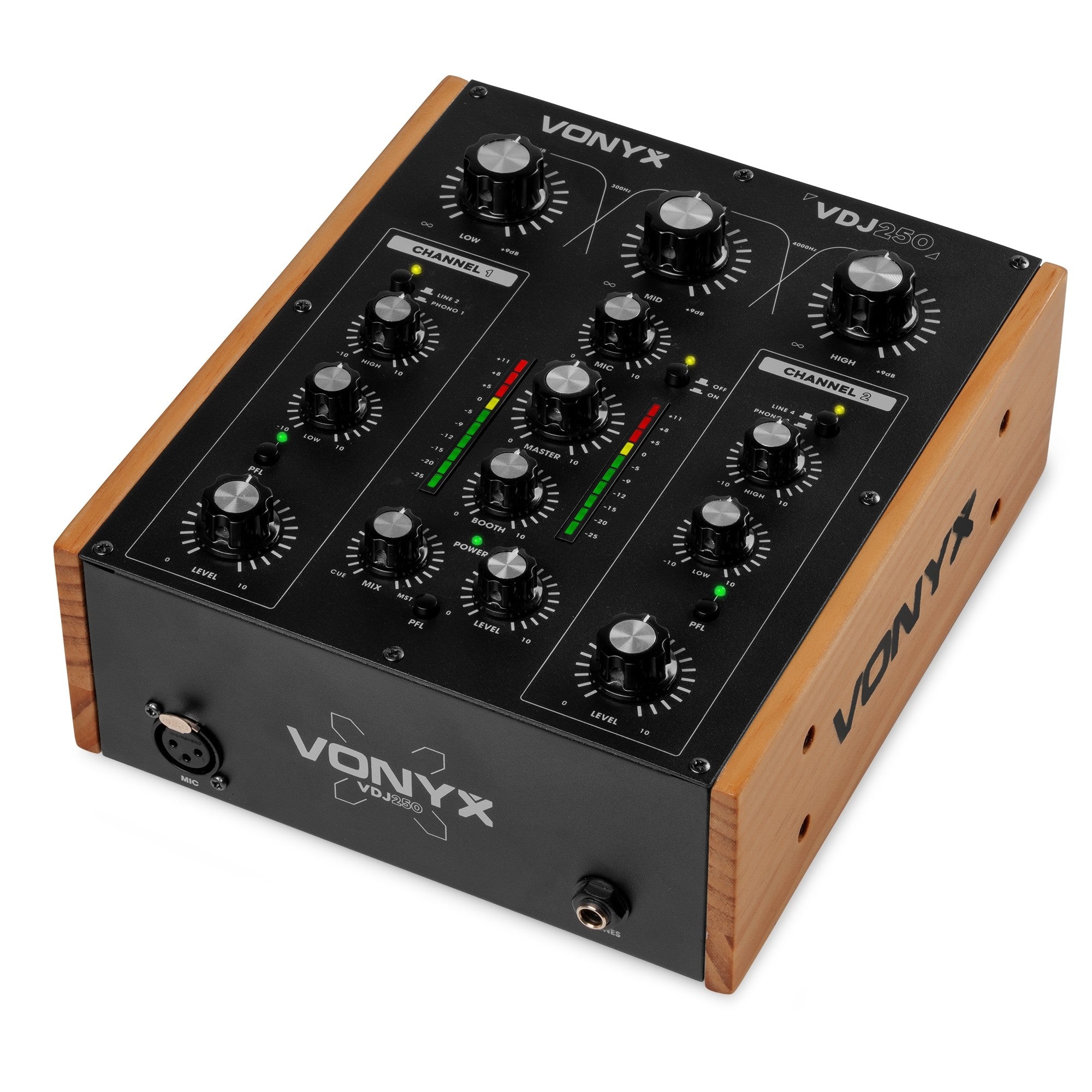 Construido con una estética clásica y una funcionalidad contemporánea, el VDJ250 se distingue por sus potenciómetros giratorios de alta calidad que permiten transiciones largas y fluidas. Su robusto chasis de metal garantiza una durabilidad excepcional, haciéndolo fiable para cualquier entorno, desde estudios en casa y bares íntimos hasta cabinas de DJ profesionales. La calidad de su sonido y su control intuitivo invitan a una conexión más profunda con la música, permitiendo al DJ esculpir el sonido de una manera más orgánica y musical.