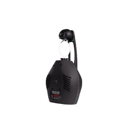 Escáner de iluminación con fuente de luz LED Osram de 20 W y temperatura de color de 6500 K. Proyección con un ángulo de enfoque de 11 grados. Rango de movimiento de 170° en Pan y 85° en Tilt. Incorpora una rueda de 9 colores dicroicos más blanco con efecto rainbow y una rueda de gobos giratorios e intercambiables. Dispone de dimmer electrónico de 0 a 100% y shutter variable de 1 a 25 fps. Operable mediante control DMX de 9 canales, 8 programas automáticos y modo audiorítmico. Alimentación universal AC 100-240 V, 50-60 Hz.
