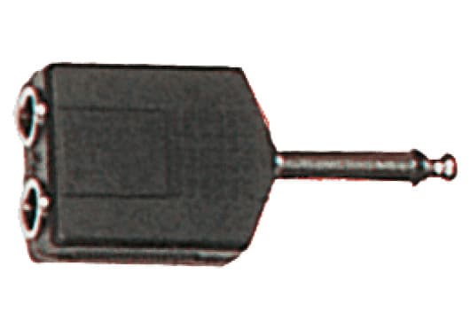 Adaptador en Y pasivo; 1 × jack 6,35 mm TS macho a 2 × jack 6,35 mm TS hembra; color negro; suministro en pack de 2 unidades; uso en distribución de señal mono no balanceada.