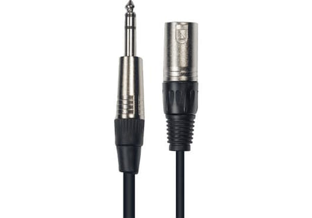 Cable balanceado TRS 6,35 mm macho a XLR macho 3 pines, longitud 3 m; blindaje en espiral de cobre; funda de PVC negra; diámetro 6 mm; referencia ECOK14-3 / K14-3.