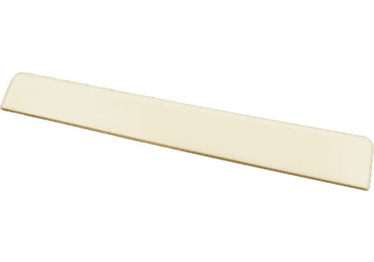 Selleta de puente para guitarra clásica Yellow Parts ADIEZ1490 fabricada en plástico de alta densidad con acabado efecto hueso. Dimensiones de 78.6 mm de longitud, 14.3 mm de altura y 3.2 mm de espesor (medidas aproximadas basadas en pulgadas). Diseño de perfil recto sin radio, formato "blank" sobredimensionado en altura para permitir el ajuste y lijado personalizado de la acción. Color marfil.