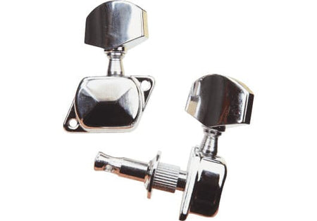 Fabricadas con una aleación metálica robusta y terminadas con un baño cromado brillante, estas clavijas no solo ofrecen una resistencia superior a la corrosión y el sudor, sino que también aportan un toque de elegancia clásica al cabezal de tu guitarra. Su mecanismo interno ha sido desarrollado para ofrecer una rotación suave pero firme, permitiendo un ajuste del tono preciso y estable sin los molestos "saltos" o retrocesos típicos de los clavijeros genéricos antiguos.