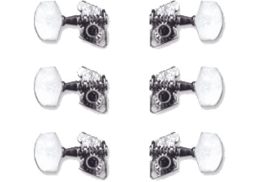 • Configuración estándar 3+3: Diseñado para palas simétricas, con tres clavijas para el lado izquierdo y tres para el derecho, el formato más común en guitarras acústicas.